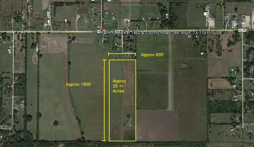 Price Reduced! Approximately 27+ acres out of 124 acres with no restrictions in Alvin. Property consists of 18 lots (4L-4X), which are 1.5 acre each. Approximate dimensions of property is 1921 ft x 626 ft which is ideal for RV park or manufactured home development. Pursley street is the access to property from FM 1462.
