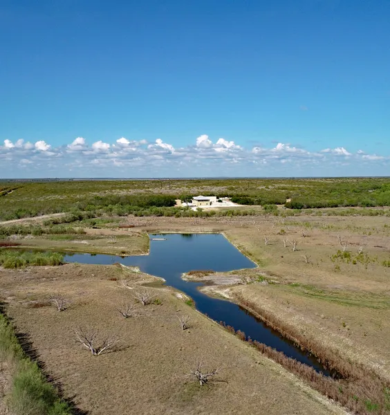 This 270-acre South Texas ranch boast improvements which consists of a well-built 1,350 sq-ft stucco 4 bedroom and 2 bath home with a 360 sq-ft screened in porch that overlooks the lake. Behind the ranch house is an 1,800 sq-ft drive thru barn with a walk-in cooler, deer cleaning facility, and plenty of storage.