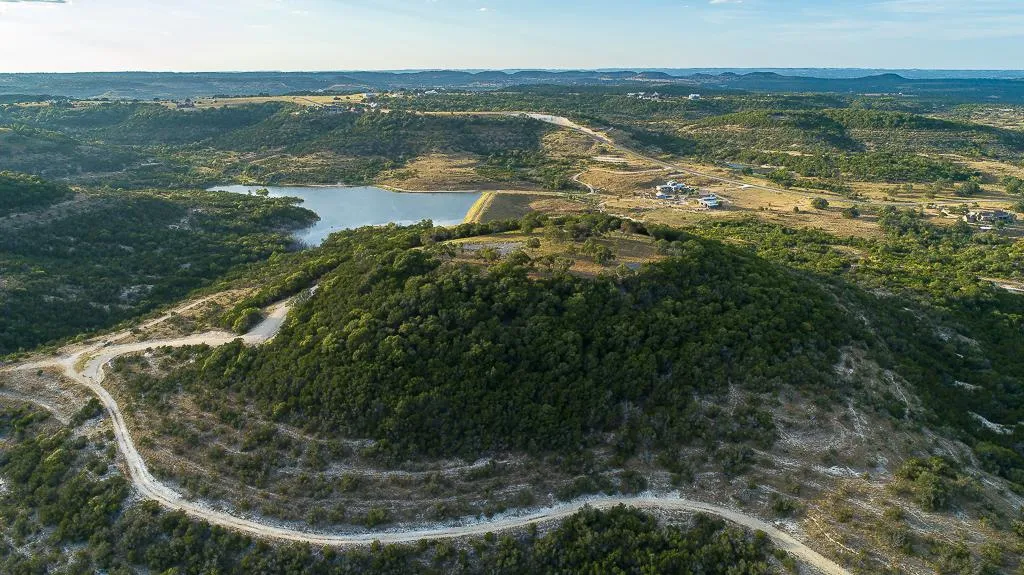 New Price! Stunning long range 360 views from this private 44+/- acres in one of the most prestigious communities in Blanco, Ranches of Brushy Top. A level build envelope at 1700'+/- above sea level awaits a custom designed home featuring dramatic hill country and lake views, encompassed by mature oaks.