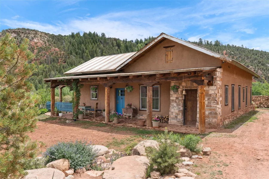 Imagine an awe-inspiring setting sun slowly dancing its way into the horizon. Mornings in which the dews on the blades of grass sparkle in the sunlight early morning moisture. The high sunlit clouds drift across a clear blue sky, filled with the dark red canyons. Imagine a world that is seen mostly on tv but instead you wake up to every day or see every night. Known locally as the “Water Creek Farm”. A blissful 62 acres is a heavenly sanctuary. Located in Coyote, near Abiquiu, where tranquility and solitude beautifully are intertwined and coexist like breathing and air. Situated in a vibrant farming/ranching community, rich in culture, language, food, tradition, and music which create a unique and welcoming and harmonic balance. The spirit that inspired O’Keeffe’s love for the area is very evident. The essence is its profound silence, limitless beauty, wildlife and abundant water. The wild Rio Puerco flows through the property, and the water is just feet away. Privacy is paramount here. Noise and clutter give way to a simple life. One echoed in the walls of this home. A stunning east-facing portal of the main home offers morning sunshine and afternoon shade, perfect for enjoying the breathtaking views year-round. The passive solar design, with thick insulated walls and solid steel roof, ensures warmth and security against the elements. The gentle smell of cedar wood burning in the cast iron wood stove adds to the cozy ambiance, effectively heating the home and providing a perfect environment. Walk the path of endless trails leading into the San Pedro Wilderness. 8 acres of irrigated land produce fruit, vegetables and grass. Not to mention the guesthouse, an RV site with electricity and water. Experience the profound beauty and tranquility of this extraordinary property, a landscape that echoes the inspiration found in many artist paintings of the area. Bring the sandals, boots, a good book and settle into the wood rocking chair, and enjoy this heavenly oasis.