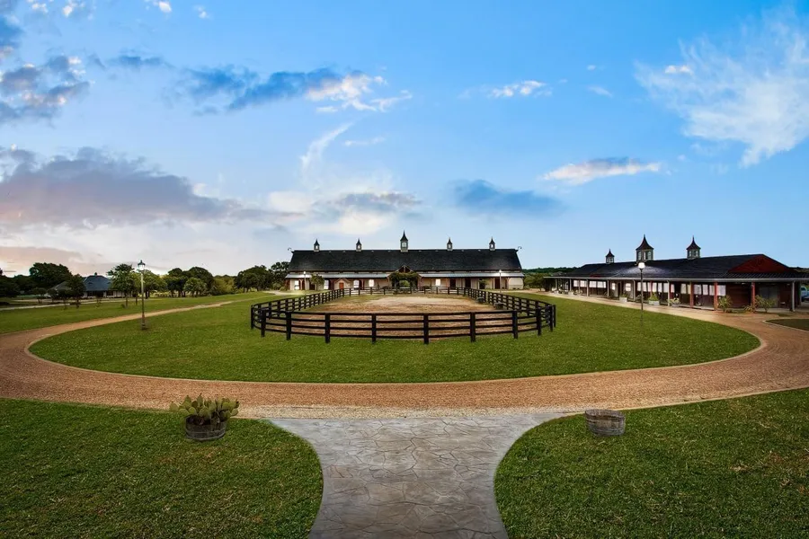 A spectacular world-class equestrian facility, perfect for training virtually any equine discipline. Located just north of the DFW Metroplex in Bartonville, Texas. This property is situated on approximately 100 acres in the heart of North Texas horse country and is only 20 minutes from DFW airport. This stunning, French Normandy style horse farm was originally built in 2001 as an English dressage training and breeding facility and is currently a cutting horse training operation. Constructed with the utmost quality in design and craftsmanship, this is truly an extraordinary property with multiple residences. The sellers have made many renovations to the property since their ownership. The show barn was designed with Normandy-style cathedral ceilings and has 20 stalls, two climate controlled tack rooms, two large, tiled wash racks, laundry room, conference room and full bath. It is state-of-the-art construction complete with industrial fire protection system, security cameras and overhead fly control system. Each stall has an outside door, and over-hanging porches encircle the barn deflecting direct sunlight from the stalls. Above the main barn is a spacious apartment with two bedrooms, a living room, kitchen and full bath and a beautiful view looking out over the front pastures. Adjacent to the show barn is the training barn with 20 separate stalls. Designed with a canopy roof, the cross ventilation keeps stalls at a comfortable temperature even on the hottest Texas days. The tack room is air-conditioned and has a bath with commercial washer and dryer. There is also a central office and conference area with a full bathroom. The climate-controlled 200 ft x 100 ft indoor arena includes four eight-ton A/C units, two Big Ass Fans and two exhaust fans. It also has custom roll-up overhead doors, cedar stave wall fencing and a viewing pavilion that is ideal for event entertaining. The viewing pavilion includes a kitchen, two offices and two baths. There are two sets of bleachers and a public address system for horse shows and events. The viewing area spans the width of the arena with floor to ceiling windows. This space has a full kitchen and room to entertain large groups. There is also a private office, perfect for the owner or manager. Adjacent to the indoor arena are two covered round pens. One houses a European-style walker, and the other is a perfect place for groundwork. Also, adjacent to the arena is a jumping arena with jumping chute designed for free jumping. A covered patio with an outdoor kitchen nearby is a great place to entertain guests and clients. The arena is connected by an alley system that leads out to the northwest pastures. Behind the jumping arena is a 130 ft round pen and a 4000 sf barn for equipment and hay. The main residence on the property is approximately 4000 square feet with three bedrooms and two baths overlooking the three ponds on the property with a two-car garage. This nicely appointed home has an open concept and can serve well for the owner, manager or trainer. It has a beautiful view of the large pond on the north side of the property. Towards the back of the property, there are two attached casitas that have been recently remodeled. The larger casita is ideal for visitors staying on the property for events, and the one-bedroom efficiency side adds additional guest space. The larger side has a beautiful fireplace and a comfortable kitchen and living room that would make anyone feel right at home.