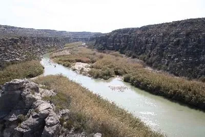 Description: The terrain varies from gently rolling on the north end of the property to high hills and deep canyons towards the south. The Rio Grande River forms the southern boundary of the ranch for approximately 6 miles. High cliffs tower above most of the river frontage with thick brush-covered “vegas” lining the banks themselves. The river can be reached on foot in several locations. In addition, the dramatic Sanderson Canyon runs for approximately 12 miles along the eastern ranch perimeter. Vegetation is typical low West Texas brush.