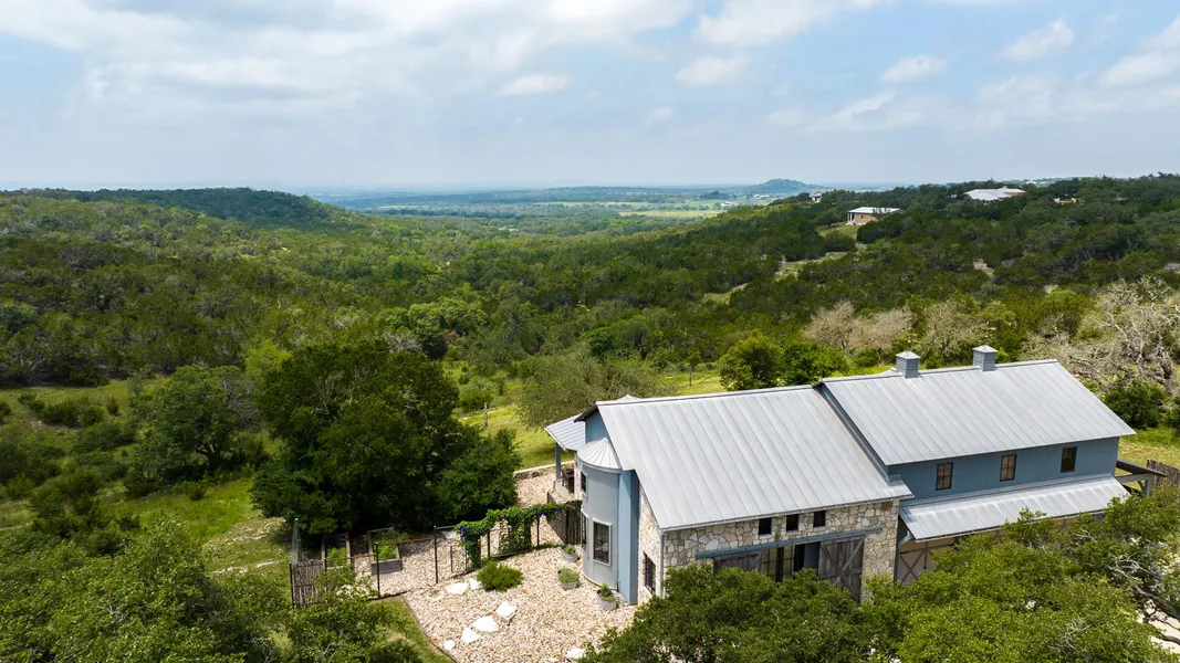 LOCATION: Charming European Inspired Laughlin Custom Homes/Restoration build nestled on 12.45 acres with breathtaking views! This lovely property with exceptional views is located approximately 14 miles North of one of the most popular towns in the Texas Hill Country. Restaurants, retail, wine tasting rooms, museums, galleries, and all your basic necessities are within a 15 minute drive.
