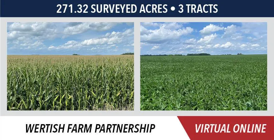 The Wertish land is located on the south edge of Bird Island, MN (Tract 1), between Bird Island and Hector, MN (Tract 2) and between Hector and Fairfax, MN (Tract 3). The farm is further described as being located in Sections 24, T115N - R34W of Bird Island Township, Section 33, T115N-R33W of Melville Township and Section 30, T114N-R32W of Martinsburg Township. All tracts represent productive tillable farmland with CPI ratings in the 90's. All parcels are square, tiled, and lay extremely well.