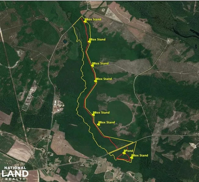 Colly Creek offers 316+/- acres with incredible access, creek frontage, a fishing pond, food plots, shooting lanes, box stands, and paved road frontage! Launch your kayak or duck boat and float, fish, and hunt over 2.5 miles of water access! Ducks, Deer, Turkey, and Bear! Nearly 3 miles of roads carry you completely across the property from HWY 210 to HWY 53. Internal roads are already established and UTV-ready! 40+ acres have been cleared and include a stocked fish pond with an automatic fish feeder. The Colly Creek Tract is conveniently located just 35 min. from Wilmington- tracts of this size and location rarely come to market. Want to have a hunting cabin? A 2,000+/- sq ft log cabin and 180+/- additional contiguous acres can be added. Call Cailein for your private showing!
