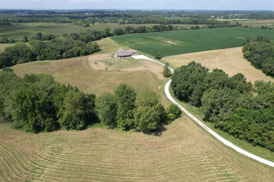 CUSTOM-BUILT in 2014, this 1-owner home has ALL the amenities you desire: Geothermal system, separate furnace & electrical box for pool room, indoor sprinkler system, solid-surface floors throughout, central vacuum system, heated main bath floors, indoor air exchange system (runs every hour on the hour), tornado resistant, reinforced roof, cabinets by Wayne Dotson, 8ft deep heated pool, pantry can be converted to an elevator, spray foam ceiling insulation, solid oak doors throughout, PLUS, quiet setting, beautiful sunrises/sunsets, approximately 22.56 income-producing acres (Productivity Index Rating 114.2), approximately 8 wooded acres with adjoining habitat, and wildlife. This high-quality home and desirable acreage is waiting for YOUR family! Schedule an exclusive showing today!