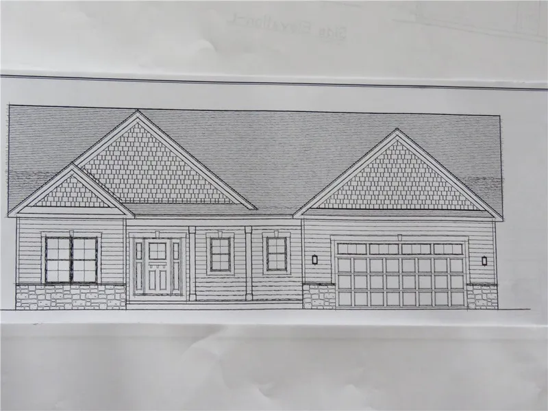 Reger Construction Welcomes you once again with a spectacular ranch style model/spec home with all the Bells and Whistles includes. Attention to detail throughout with a completion date end of October or sooner. Welcoming nice large front porch perfect for relaxation after a long day. The open foyer with 2 full glass sidelights brings in ample sunshine as you walk into the nice open kitchen and great room. Kitchen offers quartz counters with an oversized breakfast bar, large pantry and nice cupboard space. the dinette has a slider that leads to the back covered porch to watch the amazing sunsets. Oversized great room with fireplace and stone surround. large first floor laundry room with a utility sink and a combo powder room just off the garage. Main suite with a large walk in closet, main suite bath offers double sinks with quartz counter, shower with a glass door. 2 other nice size bedrooms and a full bath on the opposite side of the house. 9' ceilings enhance the whole first floor. 12 course basement with egress window, price includes central air. Included in the price is seeded lawn, 20'wide binder driveway. The 5" trim package enhances the main rooms along with recessed lights throughout. The front of the house is accented with shake and stone to bring out the richness and elegance of this plan along with the keystones over the windows. Taxes to be determined. We do our very Best to make this a stress free enjoyable experience from the beginning to the end with a zero punch list when you close.