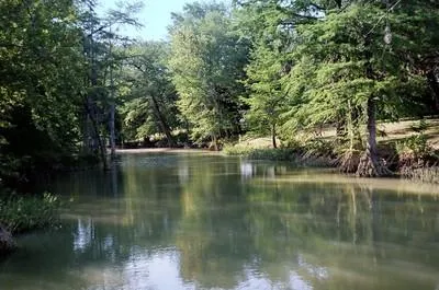 A tranquil lake of water is backed up for about 1,000 feet by the dam, and another is created by a dam downstream from the property which backs up onto the site. Thus, most of the creek water on this ranch is deeper floatable, fishable, rock-skippable and what is not flows crystal clear over a solid rock bottom. The shoreline shares main billing, as most of it consists of gentle berms dotted with giant cypress and pecan trees. The bottom is simply marvelous, and begs one to relax, slow down, and drift away into natures mystique as the sounds of gurgling water do the rest.