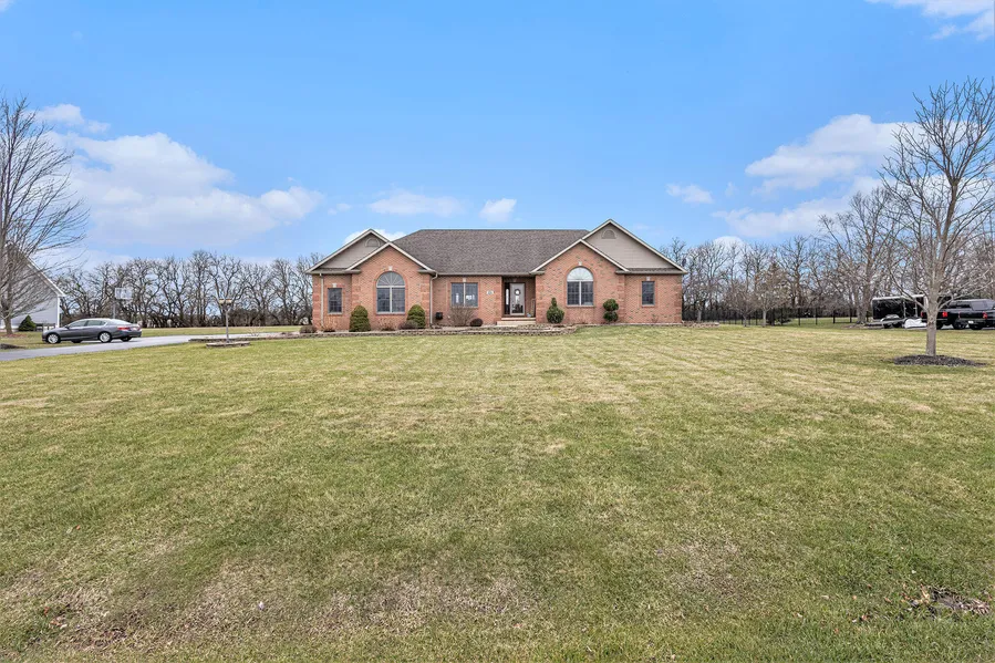 PRICE IMPROVEMENT!!! This STUNNING RANCH is PRICED TO SELL!!! This gorgeous home offers a blend of privacy, luxury, and warmth. This perfect home is nestled on 1.24 acres of land and features 3 bedrooms, 2.5 baths, high valuted ceilings, with hardwood flooring and tile throughout. The kitchen has gorgeous custom cabinets, Granite Countertops, and Stainless Steel appliances, that STAY. Cozy living room with fireplace. The primary bedroom has an en-suite bathroom with his and her vanities, a large soaking tub, and a walk-in closet. NEW 2025 furnace and A/C/unit. The GIANT Ready-To-Finish basement is a blank canvas, equipped with a sump pump and pre-plumbed for a full third bathroom. The outdoor space is nothing short of an OASIS as you step onto the huge wooden deck and look out into an endless yard, with a small shed for all your yard needs. The property includes a THREE-car attached garage and a basketball hoop. This exceptional home includes the convenience and peace-of-mind of a WHOLE-HOUSE GENERATOR SYSTEM!! MOUND Septic System!! Low taxes and very low HOA. There is so much to enjoy on this estate - come and take a tour.