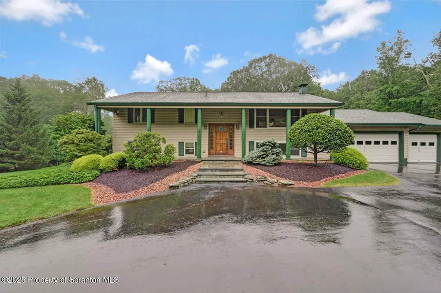This meticulously maintained 5-bedroom, 2-bath home sits on over 2 private, landscaped acres in the heart of the Poconos, offering both comfort and privacy. Built with quality craftsmanship and attention to detail, the home features top-tier finishes throughout, including Pella wood-frame windows with built-in blinds and a full-house generator for added comfort and peace of mind. A 3-car garage and paved circular driveway add both function and curb appeal. Short-term rentals are permitted, making this property ideal as a full-time residence, vacation home, or investment opportunity. The main level offers a bright and inviting living room, dining area, and a well-appointed kitchen featuring Corian countertops, custom cabinetry, and stainless steel appliances. This level features hardwood floors throughout and is equipped with central air conditioning for year-round comfort. The full bathroom includes a luxury Terestone walk-in shower. Just off the dining area, the sunroom provides a relaxing space with views of the outdoors and opens to a Trex deck overlooking the beautifully landscaped backyard and private pond. Also on the main floor are three bedrooms and a full bath. The fully finished lower level adds additional living space with a spacious family room featuring a wood-burning fireplace, two more bedrooms, a second full bath, and a laundry room. Conveniently located near major Pocono attractions and key interstates, offering both recreation and an easy commute. Schedule your showing today!