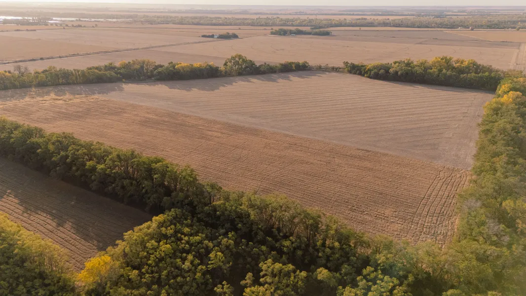Tract 1 is 165.03 +/- acres. Highly productive, pivot irrigated farmland. 2022 Zimmatic pivot nozzled at 550 gpm. 141 +/- irrigated acres. Tract 1 has 5 wells, 3 are connected to the pivot, and the other 2 are not currently in use. Tract 2 is 109.9 +/- acres of dry cropland and grass and trees. Prairie Creek runs through the tract. Excellent wildlife habitat and cropland add rental income.