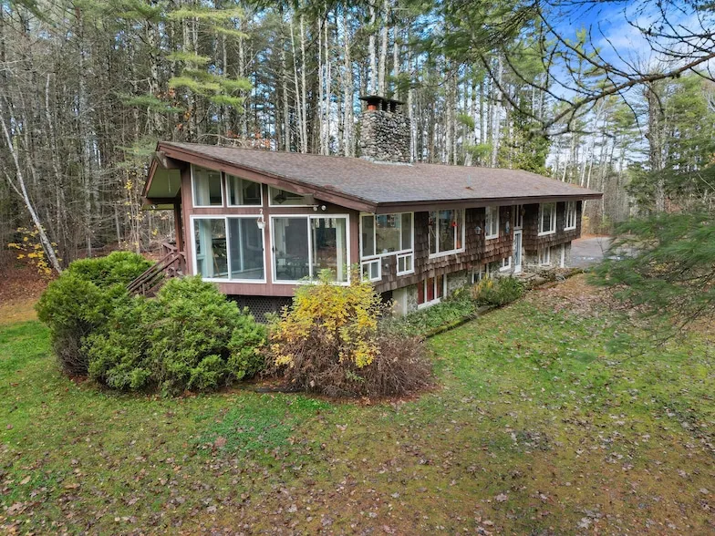 Motivated Seller! This home is the 10+ acre estate of George Homstead, one of the best known contractors in the area. The home is situated up the 250' driveway surrounded by woods for privacy and enjoying nature from the back glassed in sitting room. George designed his home with unique angles and with floor to ceiling stone fireplaces. The kitchen offers a built in pizza oven in the brick wall and a wood fireplace. The dining room and living rooms open to a glass from floor to ceiling sitting room and an attached deck. The hardwood flooring in the living and dining rooms are a special design, created by George's wife Shirley, who was an artist as well. Tiffany styled lighting shows the artistic tastes that she added to the home's decor. The master bedroom spreads the entire length of the front of the home with many windows for natural lighting. The home office features a built in desk, file cabinets and safe. The wood walls on the main floor add to the natural beauty of this one-of-a kind home. The stone fireplace is carried through to the ground level with a family room and two bedrooms, plus a bathroom and laundry room. The extra large two bay garage is heated and ample room for two cars plus any recreational toys you may have. The BONUS on this property is the two bay 32x52 commercial style garage with upstairs storage as well. This garage was built with steel beam and hurricane style tresses for strength and longevity. This is a mechanics dream garage.( Note: this is not a commercial property)There is an additional 23 adjacent acres available if interested.