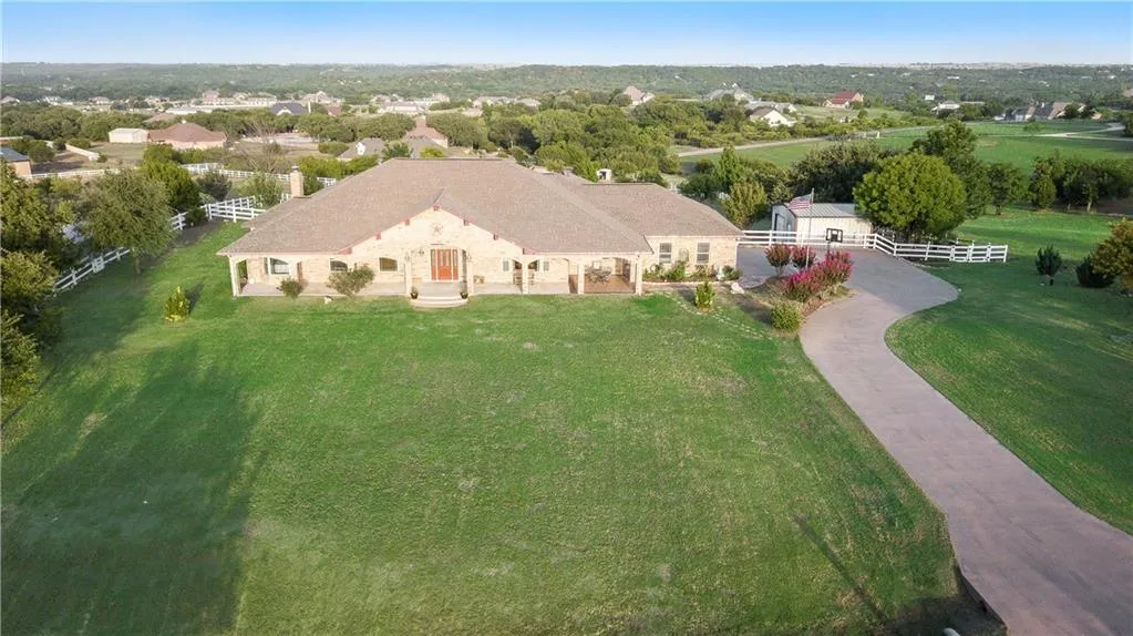 Beautiful 1 story home in gated community sits at the top of the hill featuring gorgeous views of the countryside. You have a view from everywhere on the property inside & out from the long covered front porch, back patio & all of the oversized interior rooms.Located on 4+ acres with over 40 trees lining the property. Country living with convenient access to Fort Worth & Benbrook. Bring your horses! Property also features a,3 car garage,2 half baths,1 on each end plus 2 full baths, 20x20 workshop Wonderful master suite,3 other large bedrooms with 1 currently used as a game room with a fireplace.Kitchen has Corian counter tops,double ovens,island,breakfast bar. Google maps is wrong as to location.No city taxes!