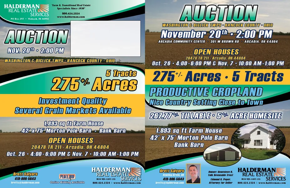 Auction Location: Arcadia Community Center: 301 W Brown Rd, Arcadia, OH 44804