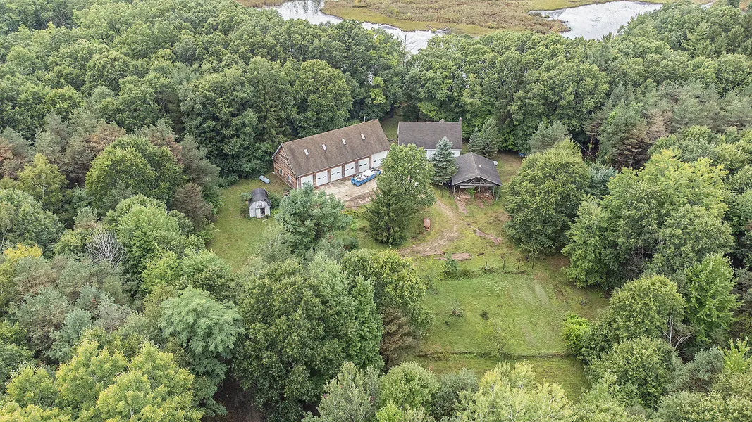Hard to find 76+ acres with a 5 bedroom walk-out home and a massive 6-stall detached garage with upstairs! Home was built in 1997 and needs remodeling and finishing but there is a ton of potential for this to be an amazing place! Gorgeous land with frontage on a private shallow lake/pond, additional streams, rolling hills, and provides excellent hunting. Enjoy your own private preserve that is also very close to state land.