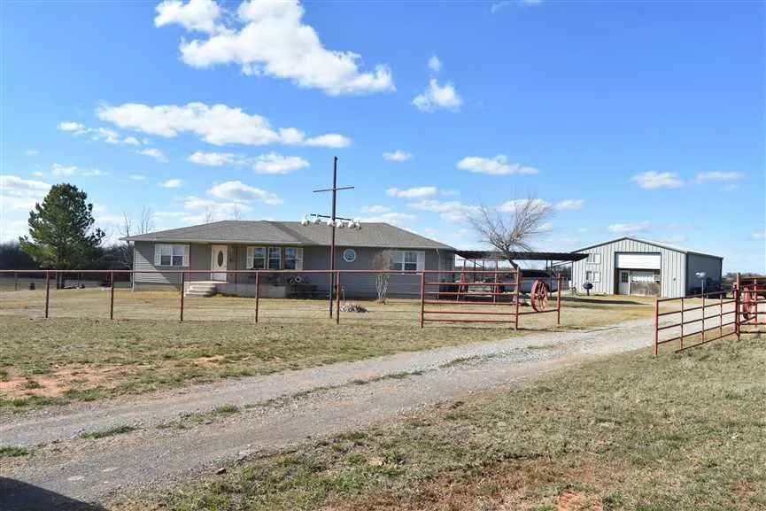 Beautiful 3 bedroom 2 bath 1820 Sq. Ft. house built in 2006 nestled comfortably on a mixed use residential, ranchland 24 acre property in Stephens County, outside of Comanche, OK 73529. The entire great room is open concept - living room, dining room and kitchen. The home is total electric except for the wonderful propane gas fireplace situated in the living room. The dining room has a massive built-in hutch. The appliances are stainless steel and will convey with the home. French doors lead onto a nice enclosed sun porch, perfect for viewing the lake, livestock and wildlife, and accessing the back patio. The covered front porch also affords views of the lake and the pasture at the front of the property. Whitetail deer are known to graze and play in the front pasture, waterfowl enjoy the pond, and Golden Eagles decorate the sky with their grace. The Corps of Engineers owns and maintains the property on the north, south and west, so nothing will be built in that area to block the lake views. They also maintain that fence line.