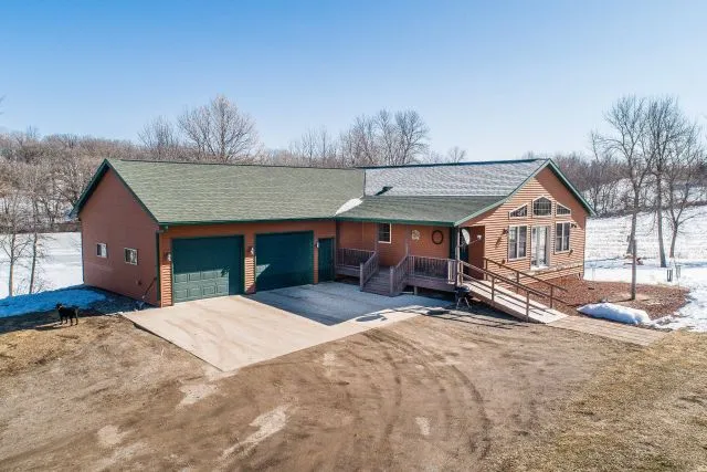 5 Bedroom, 3 bath rambler with 2700 square feet with attached 3 stall heated garage and detached heated shop on 7.9 acres overlooking unnamed lake. The shop is 32x40 with cabinets and infloor heat. Lots of space for gardens and enjoying wild life. The lake has Bass, Northerns and Panfish.'