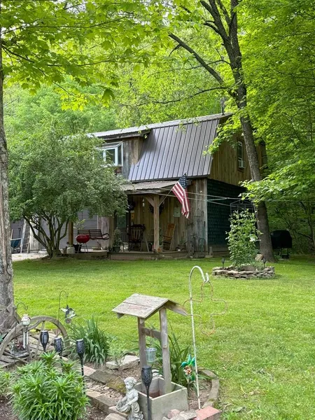 Over 27 acres with 1/4 mile road frontage, 2 cabins, 2 camper electric hookups, 30X30 garage and a small pond located approximately 15 min drive to Old Mans Cave in Hocking Hills. Cabin 1 is a 1 bed, 1 bath, 1 car attached garage. Batt and geothermal insulation, new hot water tank and newer well pump. Needs finished out with wall covering and flooring. Cabin 2 is a 1 bed loft with pine tongue and groove throughout. Needs finished out bathroom, no water or septic. Electric is ran through house but not to pole. Cut drive to top of hill. Approximately 25 wooded acres with multiple building sites. Property is marked. Selling As Is