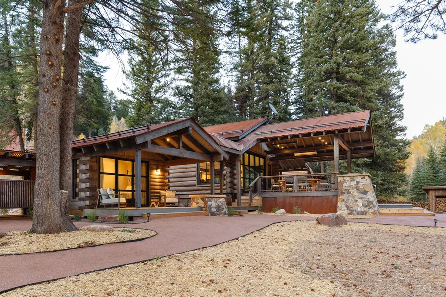 $400,000 Priced reduction this summer! Welcome to Slippery Rock River Ranch – an outdoor world class vacation home boasting a stunning location as well as a world-class fly-fishing location along a private 1,100+ foot stretch of the Dolores River. This multi-family compound offers a once-in-a-lifetime opportunity to own a legacy property located between the charming western town of Durango and the upscale resort town of Telluride. This is a historic site where the Rico-Dolores railroad once passed through. Every detail of this 36+ acre estate has been meticulously crafted and constructed by the award-winning team at Veritas Homes and designer Ashley Campbell and featured in Mountain Living Magazine. At the heart of the compound lies a beautifully designed main lodge featuring a gourmet kitchen with butlers pantry, dining and game room, as well as an upstairs loft space. Adorned with folding glass doors that overlook the river, the lodge is a perfect gathering place and opens onto a covered deck with a heated dining space, a fire pit and a brand new hot tub. Adjacent to the lodge is a quaint historic log cabin that serves as an exercise studio. Trails meander from the main lodge to the river's edge or to a stocked fishing pond with its own beachfront. The main lodge is connected by a covered breezeway, to 3 log cabins - each distinctively appointed with bedrooms and baths which offer luxurious accommodations. The breezeway includes outdoor showers which is perfect after biking, hiking, jeeping and fishing. Situated near the southern end of the property are two seasonal riverside glamping tent sites with beds, a second residence that contains a guest house or caretaker's quarters with an upstairs studio apartment, a dedicated fly-tying room (or living room), as well as two separate 2-car garages – one of which doubles as a workshop. The meticulous owners have spared no expense in collaborating with the Army Corps of Engineers to enhance the river's habitat, creating a haven for anglers with world-class fly-fishing opportunities. Outdoor enthusiasts will delight in the nearby Priest Gulch hiking trails, Bear Creek hiking trails and creek, Boggy Draw mountain biking trails, as well as off-road jeep and dirt bike trails. Close by, the historic town of Rico offers unique shopping, restaurants and some additional trail and backcountry access. For winter sports enthusiasts, both Telluride and Durango offer exceptional skiing just a short distance away. Nearby Dolores has convenient shopping at the Dolores Market, numerous cafes and shops and the Dolores River Brewing Company. Whether used as a family retreat or managed by Vacation Rental Collective for short-term rentals, this property offers unparalleled opportunities for relaxation, recreation, and luxury living amidst the breathtaking beauty of the Colorado mountains.