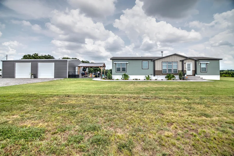 Million Dollar Views at this Less than 2 year old modular home. "Woods Bluff" is simply stunning and a must see! 10 full acres (mol) Home is 1800 sq ft 3 bed with 2 bath. Wood burning fireplace. Mother in Law floor plan. Quartz counter tops and Frigidaire kitchen appliances. Rural Water, Cotton Electric, Wildhorse trash, T-Mobile internet and Dish Network. The shop is a 24x40 with concrete floors and electric. Fluorescent lighting in shop. 2 bay doors with openers, one walk through door. Shop has a 12x24 lien too. The outdoor living space has concrete, covered pergola, lighting and outdoor fan. The property has concrete walkways and concrete porches. This is one to view in the evenings with miles and miles of views including Mt. Scott on clear days.