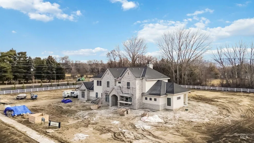 Beautifully built custom designed home in a quiet, boutique community tucked away in Eagle. Minutes from Shadow Valley golf course with convenient access to Hwy 55. Sitting on a 1.8 acre lot, this Modern Tudor style blends natural beauty with sophisticated design. Enjoy large, open living spaces, vaulted ceilings and a stunning stone fireplace. Large covered back patio off the great room with a full outdoor kitchen that is perfect for outdoor entertaining. Thermador appliances, exquisite finishes, and elegant selections throughout. Spacious master suite with secondary suite on main level. The main level office can be used as 5th bedroom. Plenty of additional storage and parking in the 1,632 sqft. detached RV garage/shop. Call the listing agent for a private tour.