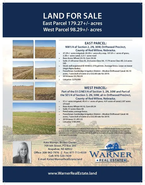 HERE IS YOUR OPPORTUNITY AT PURCHASING IRRIGATED, DRY CROP AND PASTURE SOUTH OF MCCOOK. YOU CAN PURCHASE THE EAST PARCEL OR THE WEST PARCEL OR BOTH.