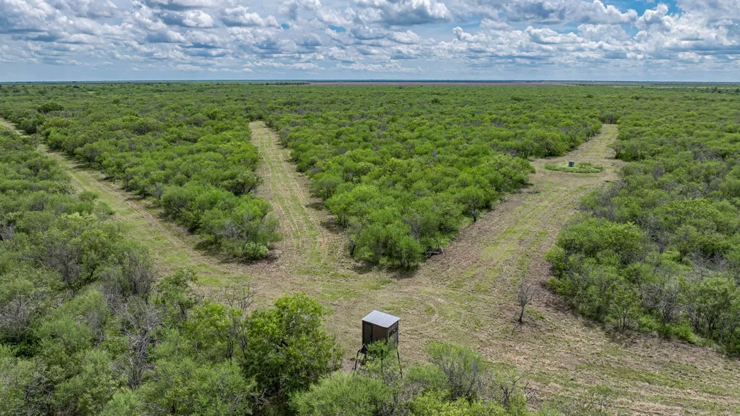 Calling all hunters! This fantastic 277 acre hunting ranch is loaded with wildlife, including deer, hogs, turkeys, and other small game. Conveniently located off U.S. Highway 77, just north of Refugio, the property features mostly level terrain and dense brush that provides excellent shelter for the areas wildlife. The ranch offers a perfect retreat for outdoor enthusiasts and avid hunters, is surrounded by larger tracts of land with farmland bordering to the south usually planted in cotton or milo. Clean fence lines and maintained senderos provide easy access across most of the property. A well-built hunting cabin sleeps four people and includes a bathroom with shower, a large deck, and an outdoor cooking area - ideal for a hunters weekend getaway. The cabin is nestled under a large approx. 60 x 100 barn, offering shade and ample space for equipment storage. Additionally, there is an RV hookup with pad site. All improvements, including the cabin and barn, were added post-Hurricane Harvey in 2017. A pond, located just beyond the cabin, can be supplemented by a nearby water well. Two blinds, four feeders, and two Conex storage containers are included with the sale. Located approximately 2 hours and 15 minutes from Houston and San Antonio, 2.5 hours from Austin, and only 45 minutes from the coast, this ranch is perfectly situated for a quick escape into nature.