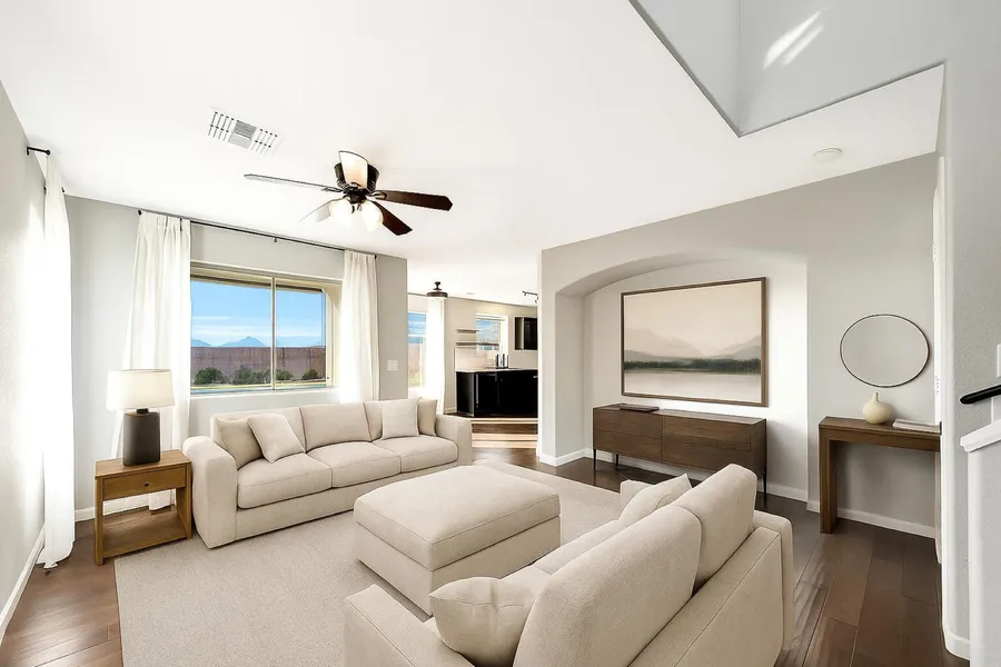 Here it is!! This move-in ready, light-filled 3 BD + versatile loft, 2.5 BA home in North Phoenix is perfectly positioned to capture MOUNTAIN VIEWS and vibrant Arizona sunsets from your backyard! PLUS enjoy ultimate privacy with no neighbors behind, a tranquil backyard retreat, and a newer sparkling blue pebbletec pool with an extended baja shelf and water feature, surrounded by easy-to-maintain turf and new landscaping. Inside, the home showcases modern touches throughout, including fresh interior paint on all walls, doors, and trim, new carpet in the bedrooms, and warm wood flooring in the main living areas. The kitchen features updated cabinetry, countertops, and backsplash, complemented by new faucets and a RO system. Upgraded lighting fixtures and interior door hardware create clean modern aesthetic. The versatile loft is perfect for a dedicated office space, game room, or children's playroom, providing flexibility to suit any lifestyle. The spacious primary suite features vaulted ceilings, a large walk-in closet with built-in shelving, dual sinks, and a soaking tub/shower combination. Additional highlights include a new roof, new water softener, new washer and dryer, and newer AC, appliances, and water heater. The exterior trim was freshly painted, and the front and backyard landscaping was enhanced with new plants, rocks, and drip irrigation, plus fenced-in pool equipment for a tidy finish. Located just 5 minutes from the Shops at Norterra, 12 minutes to TSMC, 20 minutes to Scottsdale Road, and less than 30 minutes to Phoenix Sky Harbor Airport, this home offers ultimate convenience. Make it yours today.