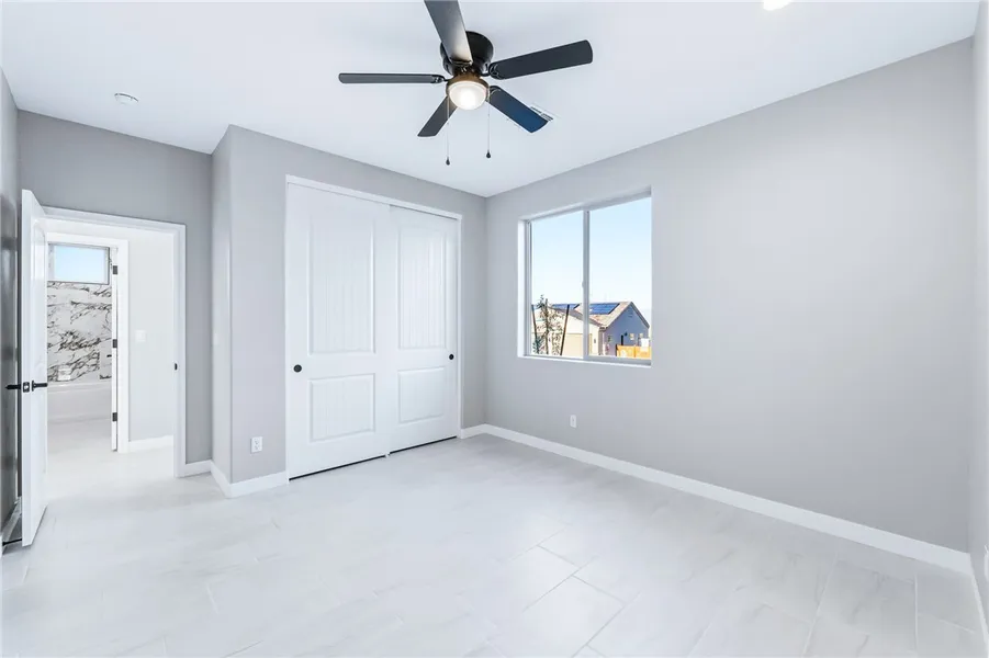 Looking for a spectacular NEW BUILD located in a prestigious GATED golf course community with 47' BOAT DEEP GARAGE? Take a drive through the areas sought after community of Laughlin Ranch Golf Club & feast your eyes on this beauty of a home which is a 2007 sf 3 bed 2 bath home that has everything you could dream of in a property. Located on a spacious .28-acre lot this home sits perched above the others which offers you breathtaking mountain views from your front yard. The front yard curb appeal is 2nd to none with its spacious paved driveway area, stacked stone entry way columns, & elegant desert landscape. Step through the leaded glass front door & into the home's grand entry foyer. That leads you into the open style concept living/dining areas where you will notice this home features tile plank flooring throughout. The living room is spacious in size, which is perfect for entertaining, & features a sliding door to your private backyard covered patio. The kitchen has features for that family chef including an enormous breakfast bar island, quartz counter tops, stainless appliances, gas range, tiled splash, pantry, self-closing cabinets, & pendant lighting. The primary suite is tucked away & is simply elegant with its quartz dual sink vanity, tiled walk-in shower, & walk in closet with built ins. The guest area of this home is located at the front with 2 guest bedrooms & guest bathroom. Both bedrooms are too spacious in size with bedroom #2 having a bay window & view of the casino lights & sunsets. The guest bathroom features a quartz top vanity & tiled tub/shower combo. A massive in-house laundry room with cabinets & closets, & ceiling fans throughout round out the interior features. If you need room for your water & desert toys, this home is the ticket. A 31(W)x47(D) passthrough garage with 9' tall doors gives you space for all your toys. The private backyard features a covered patio space & is large enough for that future pool design & backyard oasis. The Laughlin Ranch gated golf course community features an 18-hole championship golf course, community clubhouse with full restaurant, bar, & event area. The community clubhouse also features an award-winning spa & salon with fitness center & community pool (additional fees apply as clubhouse is open to the public).