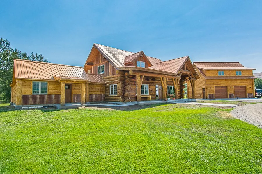 Welcome home to this custom-built Salmon Riverfront log home. Sourced from Northern Montana, this stunning residence showcases 20-24" logs with a Swedish cope cut, embodying the ideal western log home design and architecture. Inside, the open-concept living, dining, and kitchen area features custom soft-close cabinetry, granite countertops, a tile backsplash, SS appliances, and ample pantry space. The privately situated 550 sq ft primary suite includes a 4 piece bathroom with a jetted soaker tub, dual-head shower, double quartz sinks, walk-in closet, and w/d hookups. A sliding glass door opens to a potential private patio/deck with a hot tub connection. Downstairs, you'll find another bedroom and bathroom equipped with a w/d & a true hammered copper sink. The upstairs boasts a large loft space with a generous bunk room and bathroom. Outside, the detached two-car garage shop includes a never-lived-in living space above, complete with a bedroom, bathroom, & living area. All main level floors in the house & garage slab have in-floor radiant heating, ensuring comfort & efficiency throughout the winter. Nestled on 5 acres with water rights, this property is livestock permissible & includes a ready-to-use chicken coop.