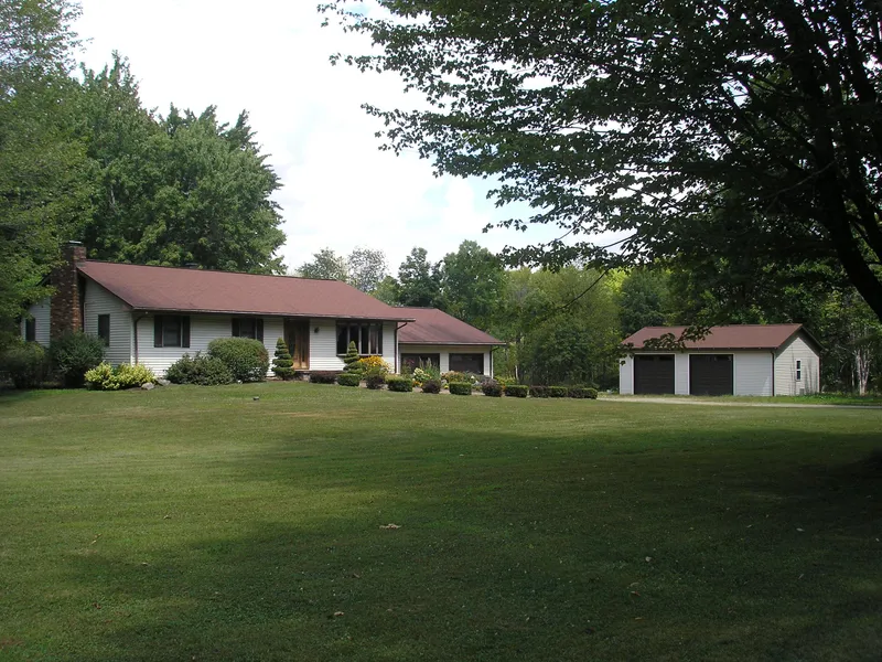 Must See Interior - 4 Bedroom, 2.5 bath Ranch with unbelievable space and amenities on 28.06 acres with gas well and apple orchard. Fantastic new kitchen with granite island, living room with floor to ceiling windows and stone wood burning fireplace, lower level family and hobby rooms, 2 car attached and 2 car detached garages. MLS 50572
