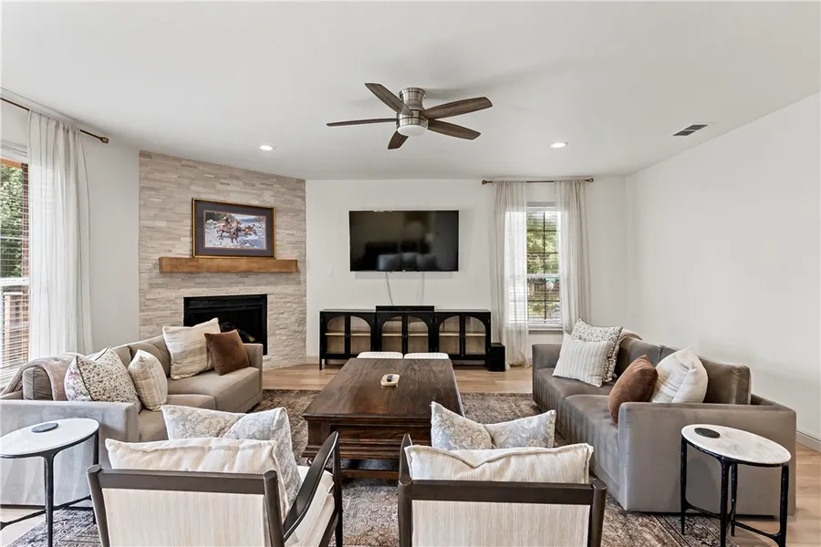 Discover your dream home in the heart of Bryan, TX! This delightful 3-bedroom, 2-bath residence combines modern functionality with classic charm. Boasting tons of UPDATES throughout along with a thoughtful layout, this home offers convenience and comfort in a desirable neighborhood. Step into a spacious living area with ample natural light, open design and a corner gas fireplace. The interior is enhanced with fresh interior paint, laminate flooring throughout (no carpet!), an updated kitchen, updated bathrooms plus a replaced roof, AC and water heater in the past 5 years. With tasteful finishes and a seamless flow from the living room to the dining area, the floorplan is ideal for entertaining guests or enjoying quiet evenings. The kitchen is equipped with stainless appliances, painted cabinetry with hardware, quartz counters, gas stove, eating bar and a spacious dining area. The primary suite is a true retreat, offering a vaulted ceiling, a generous walk-in closet and an en-suite bath that includes new dual vanities and a separate shower and tub. Two additional well-appointed bedrooms are split from the primary and provide versatility for guests or home office needs. Outside, the property features a large privacy fenced yard and a deck great for weekend barbecues or sipping morning coffee. This Bryan gem provides easy access to local amenities, parks, and schools. Dont miss your chance to make this house your next home!