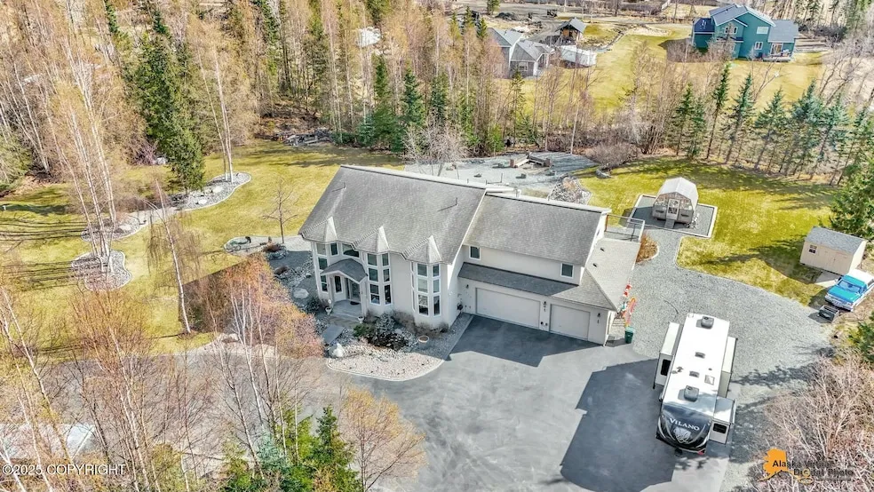 Rare find in this private oasis situated on 2.25 acres of landscaped grounds minutes from shopping & restaraunts in South Anch. Tons of paved & graveled parking W/ room for a shop. Relaxed CC&R's & no HOA make this even more rare. 4600+ sf home W/ walk out basement perfect for easy MIL conversion. Granite Counters, Solid wood & Tile floors, & expansive Master suite will please Him and Her!2800 MERGANSER FEATURES AND UPGRADESLOCATION2.27 acres of landscaped useable landCarefully landscaped for level of privacy rare for AnchorageLower Hillside Location for Longer Summers / Shorter WintersMinutes from Restaurants, Gyms, Stores & ShoppingSouth High, Goldenview & Huffman Elementary DistrictNo Home Owners Association - Relaxed CC&R'sEXTERIOR AND LANDSCAPINGApprox 16,000sf of Paved parking Double entrance pull thru drivewayRe-sealed 2023Water feature is self contained & easily moved Has elec run to it if desiredTons of additional graveled parking for trailers, RV's, EquipRoom to build a shop Extensive landscaping W/ rock retaining walls, keystone block planters & lighting60'+ Spruce "Christmas" Tree strung with lightingBackyard has wonderful South Facing exposureGreat for gardening / relaxing in the sunLarge Greenhouse ready for gardening. Sitting patio with built in benches Fire pit area Addition electrical post in far backyardStorage shed with double doors2nd forest shed on Eastern boundary of property.Existing chicken coup I(n need of refurbishing).Separate fenced dog run with direct access from garageLarge manicured lawn area & sand volley ball court area.Hot tub adjacent to walk-out basement entrance.Water Feature at front of home W/double spouts & Trex decking bridge over pond to Trex deck at front door. GARAGE AND MECHANICALHuge approx 1000sf heated garage 8' tall doors for raised trucksProfessional Epoxy flooring Prof Garage storage cabinets and workbenchesTons of lighting (no more dark garage work space)Additional door on far side of garage to access parking areaDog Wash station directly inside door to dog run areaHuge "Mud Room" between garage and house built in storage bench and cubbies and coat hooksRoom for Freezer / Add'l FridgeINTERIOR MAIN LEVEL4,600sf two story traditional plan with walk out basement.Kitchen same floor as garage for easy grocery delivery.Huge Walk in PantyAll stainless appliances - Dishwasher is newTwo story entrance W/sweeping staircase & huge wall of windows for great natural light.Separate office space / 5th bedroom off entry/foyer area.( Open and Vaulted two story Living room / Kitchen area South facing wall of windows looking out on to private manicured backyardCozy gas fireplace W/ blowerRoomy kitchen W/new Granite Counters & Tile BacksplashSolid 3/4" Canary Wood FloorSouth facing Trex deck off kitchen area for grilling & chillin New Carpet 2024 Entry & Living Room Great Wall space for art work or trophy mountsINTERIOR UPPER LEVEL Bridge plan has upper landing with Mountain viewsSeparate laundry room upstairs Newer Washer/Dryer stayTwo Upstairs bedrooms W/ "jack & Jill" bathroom set up Dual sinks & Separate Shower to make getting ready easier3rd upstairs bedroom has walk in closet & private full bathNew Carpet Through out in 2024Huge master bedroomSeparate walk-in closet with built in shelving and organizersMaster bath with separate shower, jetted tub and bidet & fan w/heaterNew Granite Counters Tray ceiling Gas FireplaceINTERIOR LOWER LEVELWalk out basement with Full BathMother in Law space possible with separate entranceEasy to add walls to make additional bedroom.Projector stays for media room.Separate zone/furnace for basement - control heat separate.Whole house alarm system - monitored by Guardian.PEX plumbing system & panel