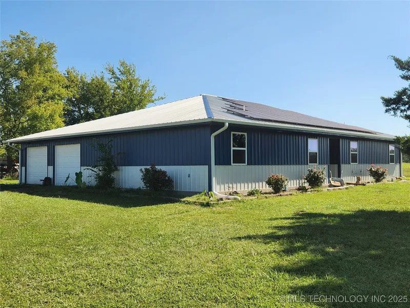 Discover peaceful country living just minutes from Lake Hudson with this lovely 5/3 home, built in 2021 & perfectly situated on 10+ acres of mixed pasture & trees. Ideal for nature lovers, hobby farmers, or anyone seeking space & serenity, the property features 2 ponds, excellent pasture land & plenty of room to roam. Step inside to an open-concept layout that seamlessly connects the kitchen, dining & great room w/vaulted ceilings-perfect for entertaining or family gatherings. The kitchen is a chef's dream with a HUGE walk-in pantry, SS appliances, large center island and durable LVP flooring is throughout the home. The smart split-bedroom design offers privacy with the primary suite tucked away on one side, complete with private bath & walk-in closet. On the opposite side, the 4 bedrooms are split with each 2 bedrooms sharing direct access to full bath-ideal for kids, guests or multigenerational living. Enjoy outdoor living year-round with a large covered back patio, perfect for relaxing while taking in your wide-open views. A solar panel system adds energy efficiency and long-term savings. Whether your looking for a place to grow, relax, or play, this property offers the perfect balance of comfort, space, and sustainability-just a short drive from the lake or town.