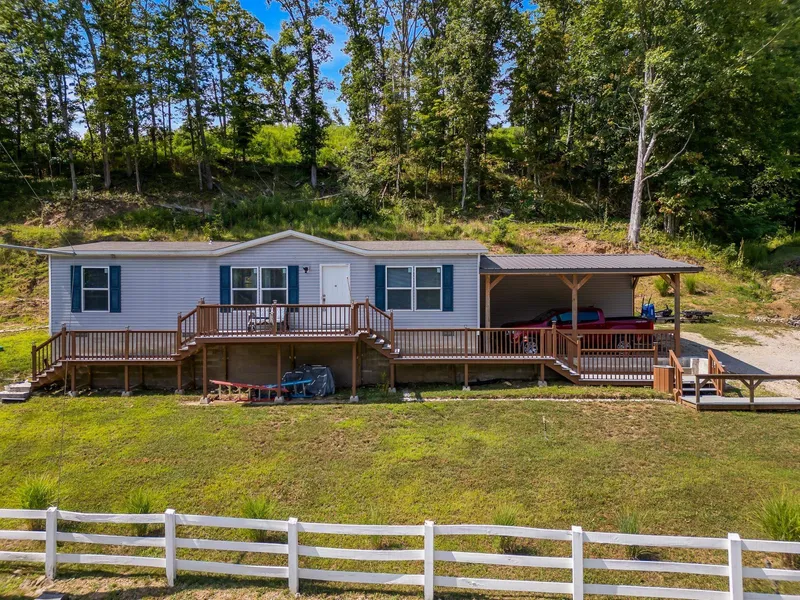 This adorable, trendy doublewide offers modern comforts and charming appeal. This home is completely upgraded and boasts an open concept layout which enhances the living space and features a primary en-suite for added privacy & comfort. Every detail has been thoughtfully upgraded and all furniture will convey, making this home truly turn-key and move-in ready! Situated on a little over a half acre double lot, framed with split-rail fencing and a recently added workshop/storage building and a carport. Whether you are relaxing or entertaining, this home offers a seamless blend of style and functionality.