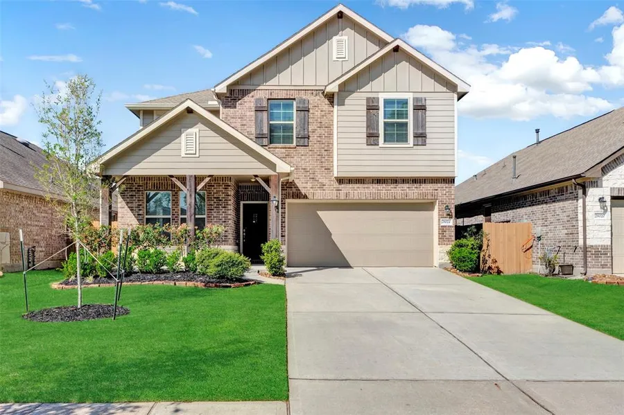 Zoned to TOP-RATED schools!! This meticulously maintained, like-new home has great curb appeal and features a charming front porch. The interior has neutral tones and plenty of windows, filling the space with light. The first floor is free of carpet for easy upkeep. A private study with French doors offers a quiet workspace. The kitchen, featuring a spacious island with a breakfast bar, gas stove, and large walk-in pantry, opens to the dining and family rooms for easy flow and entertaining. The primary suite with bay windows, features a renovated frameless shower, soaking tub, and walk-in closet conveniently connected to the laundry room. Upstairs are three bedrooms, a full bath with double sinks, and a versatile loft ideal for daily living. The covered patio is ideal for both relaxing and hosting guests. Bonus features include SS refrigerator, washer/dryer, Wi-Fi Certified home w/Amazon and Ring doorbell. Conveniently located near 99, Hardy Toll, and I-45.