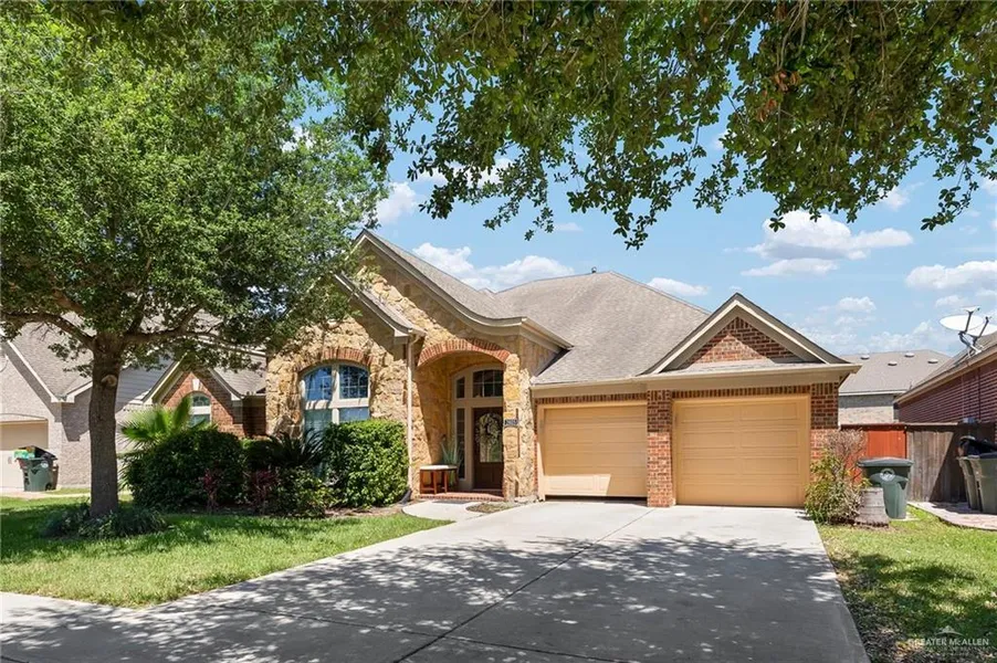 Welcome to this elegant 3,000-square-foot residence nestled within the esteemed Valencia neighborhood of Sharyland Plantation, offering a refined blend of luxury and convenience. Located within walking distance of both elementary and middle schools, this home provides an ideal setting for families seeking a comfortable and accessible lifestyle. Inside, hardwood flooring flows throughout the open-concept living spaces, creating a warm and inviting atmosphere. The gourmet kitchen, featuring a spacious island, seamlessly connects to the dining areas, making it perfect for both casual meals and formal entertaining. Tranquil bedrooms, complete with walk-in closets, offer ample storage and comfort, while the master suite provides a ample space.