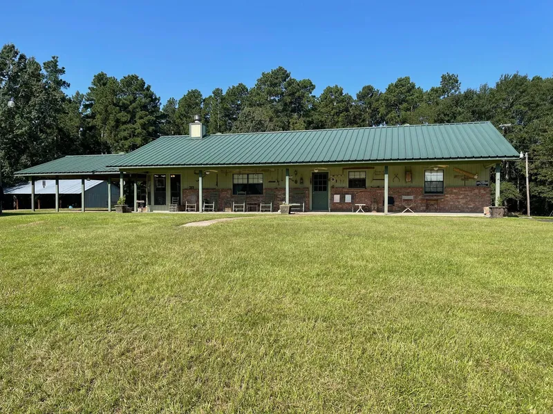 If you're looking for a secluded home place or weekend retreat, this property may be for you! Located on a heavily wooded 45.104-acre tract, this two bedroom, two bath ranch-style home is in great condition and move-in-ready. This property is on a quiet county road, just off FM 1733, and borders the Davy Crockett National Forest on one side. You will love the large, covered front porch for relaxing after a long day of hunting or working in the yard. The spacious home features a cozy living with fireplace to warm up on those chilly East Texas nights. The kitchen/dining area overlooks a large backyard, where you will find several mature pear trees and enjoy watching the wildlife at the game feeder. The wood and tile floors throughout the home make for easy cleanup. The primary bedroom has a private bath, while the secondary bedroom has access to a bath for guests. Outdoors, you will find a nice 24'x30' shop on a slab and a 24'x52' pole barn for storage, equipment, and tools. There are also metal holding pens for livestock and horse stalls. This property has plenty of room for gardening, a few head of livestock, and great hunting opportunities. Properties like this are a rare find, so don't miss your chance on this one call today for more details!