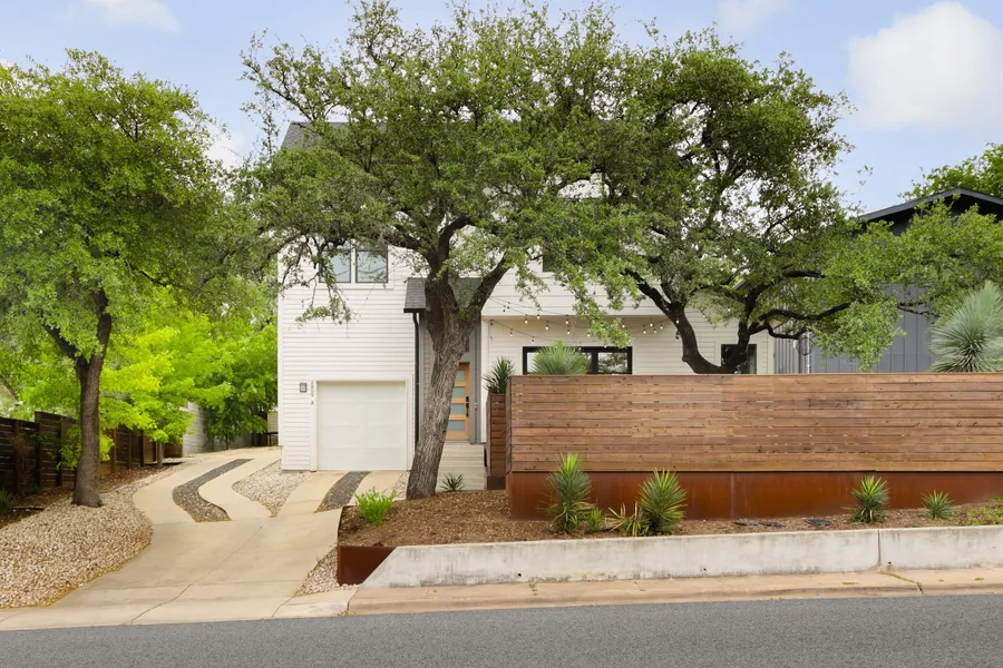 Welcome to a chic, one-of-a-kind home in one of Austin's most sought-after neighborhoods just South of Bouldin, and moments from the vibrant energy of Congress Avenue and South Lamar. Surrounded by mature oak trees, this home offers a serene and private setting while providing an amazing indoor/outdoor flow that brings the beauty of nature inside from the custom Cantera door. You’re immediately greeted by incredible finishes, including hardwood floors throughout, which add warmth and sophistication to every room. The wide-open floor plan offers seamless transitions between the living, dining, and kitchen areas, making it perfect for entertaining or enjoying everyday life. Expansive windows allow natural light to illuminate the space, creating a bright and airy atmosphere, while custom automated solar shades throughout the home ensure comfort, privacy, and energy efficiency. The primary suite features a custom closet to meet your every need, offering ample space and organization. Outside, the fully enclosed fence provides ultimate privacy, and the landscaped yard includes a cozy fire pit. A fully irrigated sprinkler system ensures the yard stays lush and inviting year-round. One of the standout features of this home is its stunning views of downtown Austin, offering a unique blend of tranquility and cityscape right at your doorstep. With an unbeatable location, sophisticated design, and an effortless connection to the outdoors and the city, this home embodies Austin's best living. Don’t miss out on the opportunity to own a piece of one of Austin’s most desirable neighborhoods, where comfort, style, and incredible vibes come together.