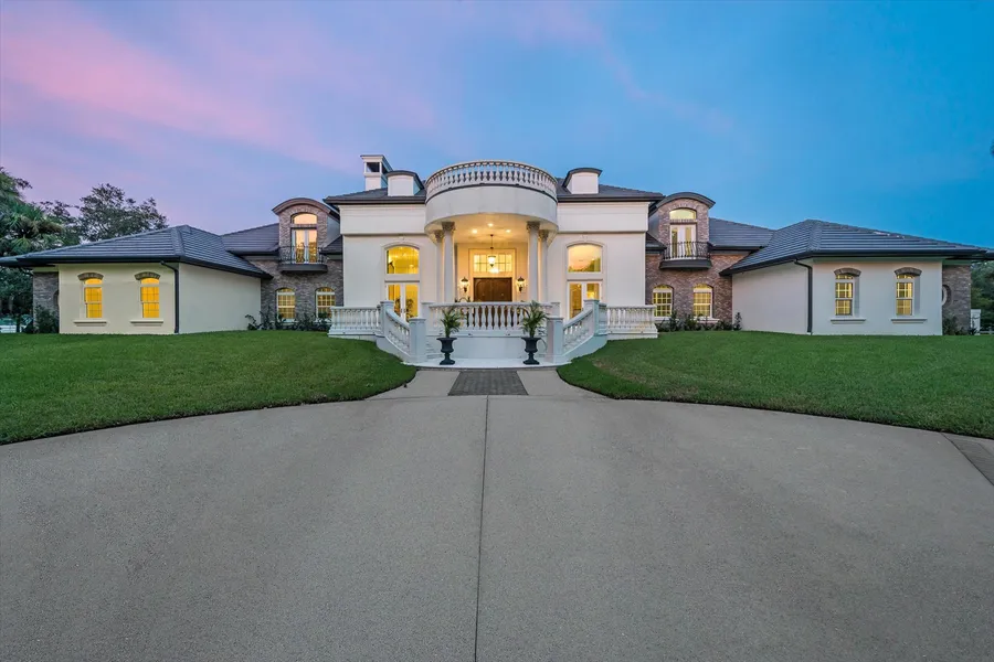 Serenity is what you will discover in this vast estate nestled among 10 acres featuring its own private spring-fed lake. With an impressive 7608 square feet, this single-family home features 5 bedrooms, 4 full baths, and 2 half baths. As you drive through the completely private hand-forged iron gates, the sense of being in another place and time is immediately obvious. Mature and majestic oaks canopy the winding drive to this southern stately home. Completely renovated in the last several years, just some of the special features include a gourmet kitchen with custom cabinetry, Italian tile, and state-of-the-art appliances. More.... An eight-person theater with stadium seating and a sumptuous loggia with a double-sided fireplace and electronic roll-down screens allow the owner of this spectacular property to enjoy Florida's envied climate year-round. Each room is meticulously designed to exude warmth and luxury. From the custom two-story library crafted entirely of cherry wood, grand formal living, and sumptuous private dining room to the summer kitchen with incredible views of the balustraded pool, majestic oaks, and private fencing of the entire property. This estate is an exquisite blend of comfort and elegance, offering the perfect sanctuary for those who appreciate the finer things in life.