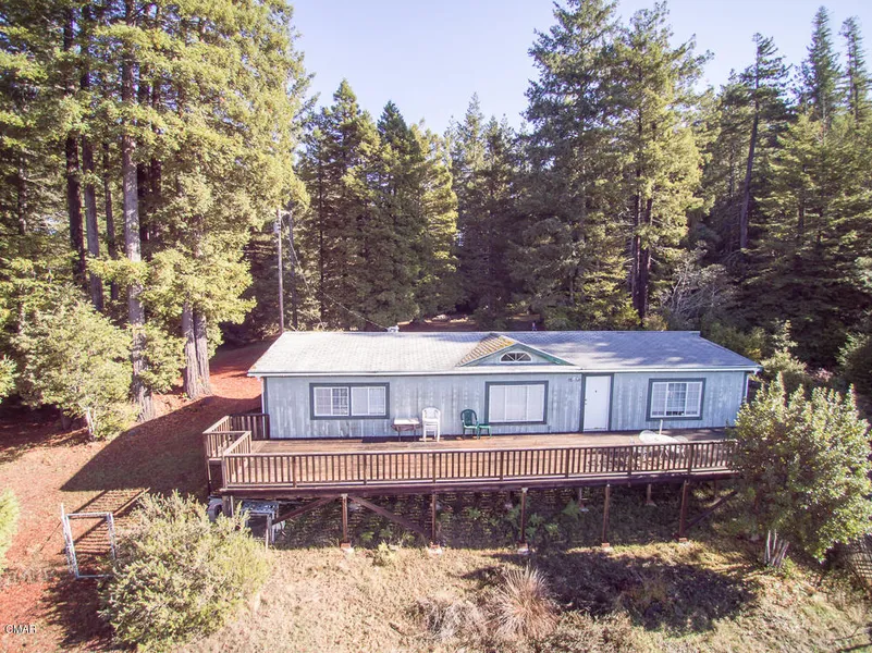 A unique hill top setting with incredible ocean and forest views. Property, bordering Jackson State Forest, totals twenty acres of mature redwood trees. Located at the end of Simpson Lane it offers a quiet refuge for anyone seeking solitude. Your nearest neighbors are deer and quail. The hilltop, inland, location is above the fog and wind that frequent the coastline. Includes a two bedroom manufactured home with an open concept floor plan and natural light. There is also an office/den that doubles as a guest room. Situated with a panoramic ocean view and 12x60 foot redwood deck that is perfect for morning yoga, whale watching, stargazing or taking in the evening sunsets. The property has been family owned as a summer retreat and retirement home since 1956. The compound includes a campground with bathhouse, storage shed, pump house, campfire pit and storage tank for water. The original cabin remains and is used for storage. There are unlimited old logging roads and lush forest for hiking and exploring. It must be seen to be appreciated.