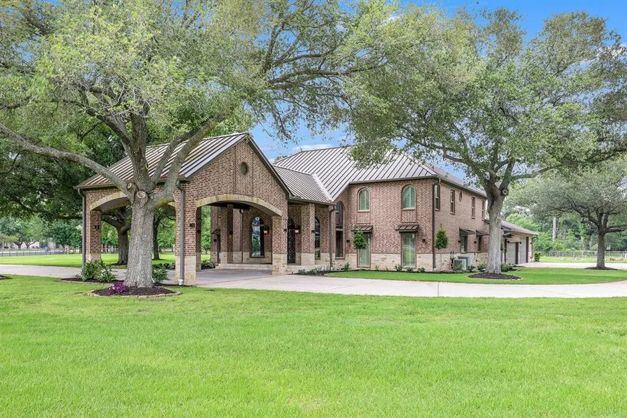 River Oaks meets Katy w/this GORGEOUS home nestled on a gated 3 acres in Katy, Texas! The property is surrounded by a well-manicured lawn, w/tall trees providing plenty of shade. The gated entrance ensures that you can enjoy security & peace of mind. Exterior is a charming blend of traditional & modern styles, w/brick, stone & metal roof adding durability & character. Inside, the home is spacious & inviting, boasting gorgeous wood flooring, crown molding & architectural details that are on point w/plenty of room for all. An island kitchen is a chef\'s dream, w/high-end appliances, dbl ovens, steamer, refrig & warming drawers, & tons of storage. 2 primaries are game changers in the design & all bedrooms are generously sized. Home features an abundance of different areas to entertain, from the formal dining, exceptional parlor w/huge wet bar, game room w/murphy beds for guests, to the ENORMOUS family room & sunroom w/fabulously appointed cooking area, auto-court w/4-car garage & more!