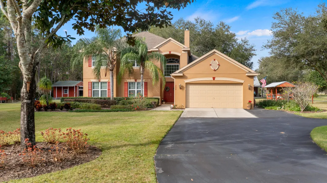 This 4 bedroom 3 bath home sits on 6+ acres of meticulously maintained and cleared land. Bring your horses & toys, there is plenty of room for both! The master bedroom w/ private bath, walk in shower & jacuzzi tub is on the main floor along with a secondary bedroom. There is a full bathroom right off the 2nd bedroom giving your guest a feeling of privacy. The double sided open staircase affords you access to two additional bedrooms with walk-in closets, a full bathroom & loft, perfect for a home gym or office You will find the family room very comfortable with cathedral ceilings, hardwood floors & a wood burning fireplace. Easy access from the back of the home through sliding glass doors from either the kitchen, family room or master bedroom to the oversized covered, screened back patio with pavers. The large covered, screened in porch has quiet views of the landscaped yard. In addition to the attached 2 car garage, there is a 1440 sf detached 3 car garage with carport. This detached garage has a car lift, electricity, loft & an abundance of storage space. As if this isn't enough, there is also an oversized shed with a ramp that's perfect for storing yard equipment. This property is completely fenced & cross fenced with a security gate at the front entrance. Other upgrades include a newer well, high efficiency windows installed in 2020 & exterior paint in 2020. If you're looking for land with a house you can be proud to call "home", you just found it!