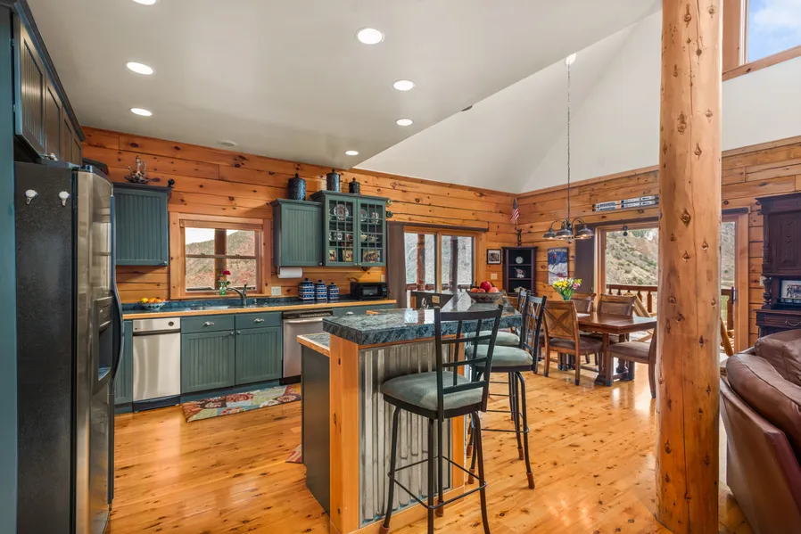 A rock-solid log home perched on 8 acres of pristine land, this oasis epitomizes mountain luxury and tranquility. The custom-built residence, featuring Butt and Pass corner style log construction and a stone wall foundation, offers unmatched durability and charm. The property's panoramic views stretch from the cliffs over Redstone to the summit of Mt. Sopris, creating a simply breathtaking backdrop. Inside, the home's vaulted ceilings and open floor plan are accentuated by wood-crafted floors, wood-sculptured walls, and a stacked stone fireplace, providing a warm and inviting atmosphere. The gourmet kitchen is a culinary dream, boasting a gas burner cooking island and stainless appliances, seamlessly flowing into the communal living spaces. Accommodations include two primary suites and a bunkroom, complemented by a spacious loft office/den, which could also serve as an additional bedroom. Aesthetic and practical features abound, such as a clawfoot tub for relaxing soaks and a heated oversized garage for storage and convenience. This turn-key property comes fully furnished, with meticulous maintenance inside and out. Its expansive wrap-around covered porch offers endless views and a vantage point to observe the abundant wildlife and listen to the Crystal River's soothing sounds during the warmer months. Located with a national forest on two sides, the home is close to outdoor adventures, including hiking and biking trails. While secluded, it remains just a short drive to both downtown Carbondale and quaint Redstone, and less than an hour from Aspen's four world-class skiing destinations. 283 Cherokee is more than a home; it's a testament to quality craftsmanship and a gateway to a lifestyle surrounded by nature's beauty. This is a rare opportunity to acquire a property embodying the essence of Colorado living.