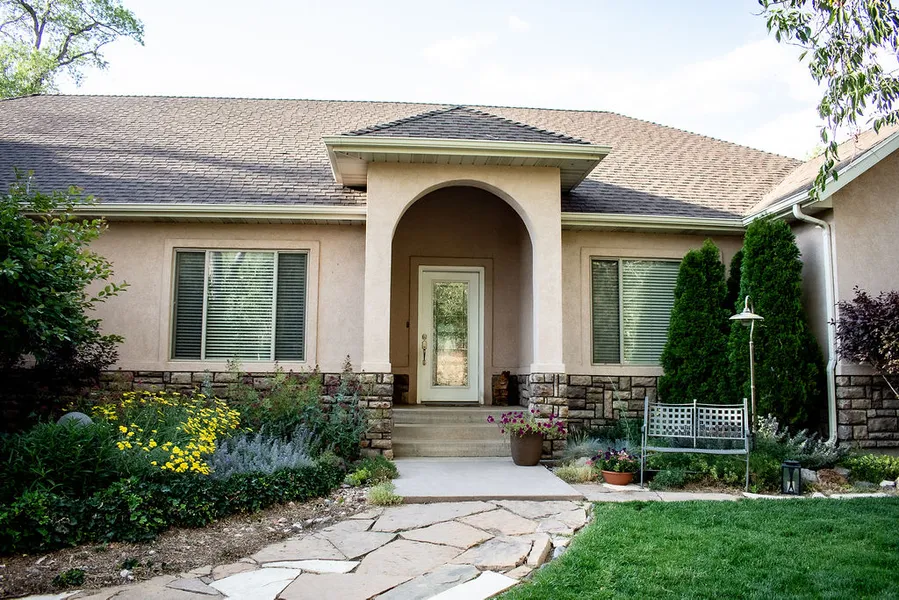 Amazingly beautiful home on 4 acres at the base of Tusher Mts & backs up to BLM land. 7 ft. fence & many trees provide park like setting bordering a river & only 3 miles from town. Large single home custom built in 2006. Open floor plan & luxurious upgrades such as granite counter tops, custom cabinetry, large master suite with jetted tub, huge walk in closet & french doors to patio & gardens. Home has beautiful landscaping. East access to Eagle Point Ski Resort. ATV trails, golf course & more. This home is a package deal with smaller home on property for $819,000 total. You must see this home to appreciate the solitude & tranquility of this remarkable secret hideaway. See MLS Listing # to view other home.