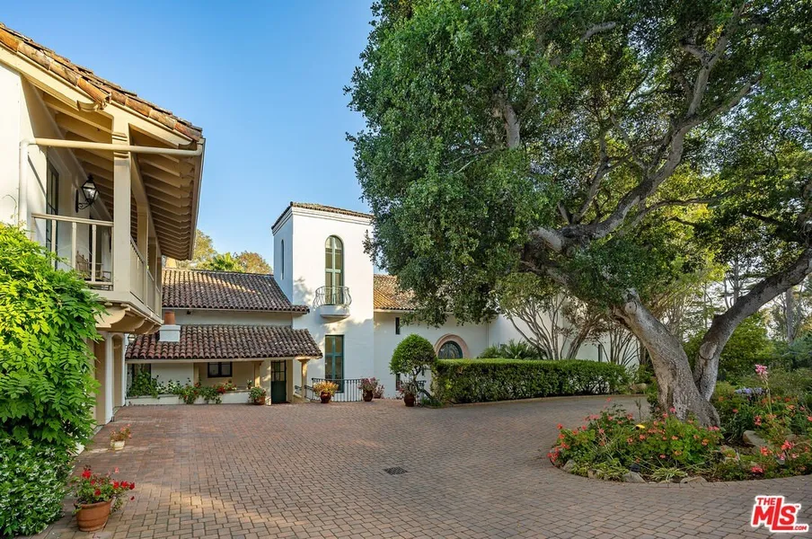 Tucked behind the gates of Montecito's coveted Ennisbrook community, 284 Gould Lane is a grand Mediterranean residence blending timeless architecture with privacy and scale. Set amid vibrant gardens on 1.68 acres, this expansive estate captures the romance of Santa Barbara's golden age with its classic clay tile roof and wrought iron detailing. A dramatic formal entry introduces the voluminous interiors, where a soaring great room with a stone fireplace and oversized windows offers an elegant focal point for gathering. Just beyond, the formal dining room opens to a sun-drenched terrace, ideal for indoor-outdoor entertaining. The spacious kitchen includes a charming breakfast nook and bar seating, with windows that overlook the beautiful pool and spa, creating a serene backdrop for everyday living. The bedrooms provide generous accommodations, including a primary suite with fireplace, sitting area, and peaceful views. A separate guest suite above the garage, complete with its own entrance and full bath, offers added privacy for visitors or extended stays. Multiple living spaces - including an office and cozy den with a fireplace and a flexible upstairs landing - ensure room for both relaxation and entertaining. Outside, meandering paths wind through colorful plantings, mature trees, and blooming bougainvillea. Multiple patios offer peaceful settings for al fresco dining, while the motor court and three-car garage provide ample parking and storage. Located within the highly desired Ennisbrook enclave, this residence enjoys access to community amenities including tennis courts, pool, clubhouse, scenic trails, and security. An exceptional opportunity to experience the Montecito lifestyle in a gated setting just moments from beaches, shops, and the Upper & Lower Village.