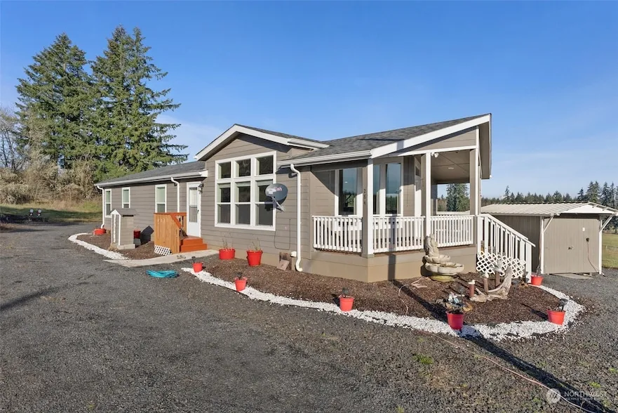 Escape to the tranquility of rural Lewis county with this charming two bedroom, two bathroom home set on two picturesque acres. Enjoy breathtaking views of Mount Rainier from your private deck. This home features a spacious open floor plan with a sun-filled living room and family room, perfect for entertaining. The cook's kitchen boasts solid surface counters, a breakfast bar and a walk in pantry. Relax on the covered decks or take advantage of the ample outdoor space from gardening, RV parking, or building your dream shop. Additional amenities include a private well and multiple storage sheds. Don't miss this opportunity to add your personal touch and make this your dream home!