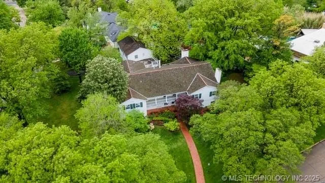 Exceptional FOREST HILLS, "Monterey Colonial" home situated on premier 1-acre, corner lot. This one-owner home was originally designed by Tulsa's first female architect, Mary Caroline Cole. Featuring an impressive entry, plus grand-scale rooms continued throughout. Two first floor livings with fireplaces. Formal dining and a large, breakfast/sitting room adjacent to kitchen. Oversized, separate upstairs primary bedroom suite includes large dressing area/walk-in closets. Three additional upstairs bedroom suites each with private baths. The upstairs floorplan offers a spacious, open living at the top of the landing with front balcony access, and multiple flex rooms for hobbies/crafts, gym, etc. Hardwood floors throughout most of the first and second floor. Private, landscaped backyard with pool, large gazebo/outdoor living with fireplace, plus outdoor full bath and sauna. Large basement with fireplace and full bath. Equipped with whole home generator. Enclosed breezeway to 3-car garage. Additional guest apartment, with private entrance, over garage. New roof in August 2022. Guest apartment with private entrance over garage.