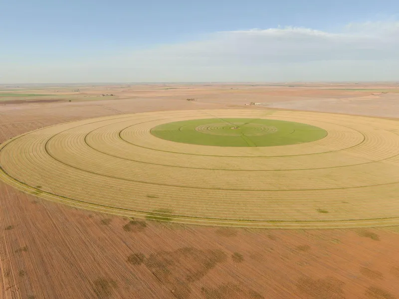 is equipped with 2 of the operational Valley pivot irrigation systems that are tied together so a person can focus all the water as they are set up to run one pivot at a time. The north pivot is packaged at 300 gpm and the south pivot is currently packaged at 250 gpm but owner has stated plans to change package to 300gpm as he estimates that the wells are pumping approximately 300 gpm total. This tract would work great for a spring/fall rotation. Currently both tracts are in cultivation but would work great for a wheat/grass combo, providing potential for year around pasture/forage production.