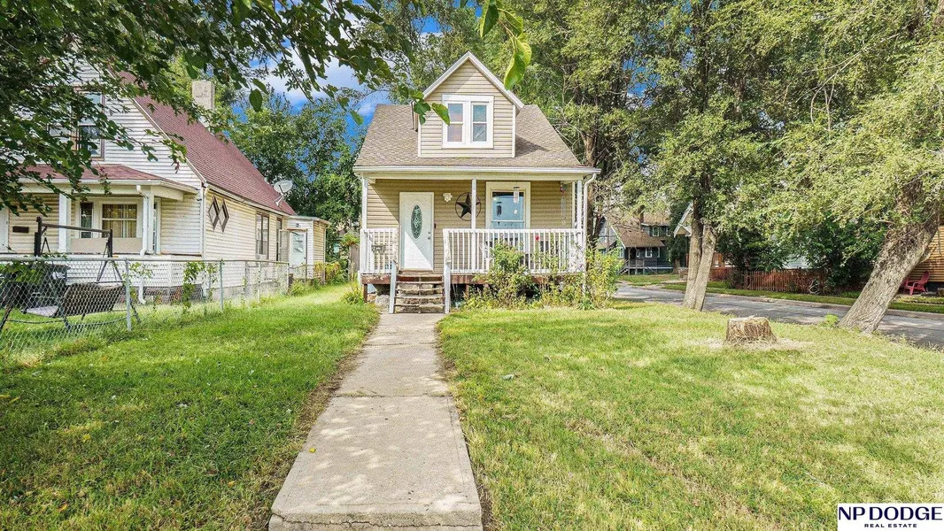 Johnny Reyes, M: 402-710-1596, , - Welcome to your new home! This 1.5 story home sits on a corner lot with convenient access to the interstate, close to downtown, nearby grocery, parks, and fire station. Updated features includes completed vinyl siding, newer paint and floors, and some new windows all throughout the main floor. Roof was done in 2024. Fenced yard for privacy and the Omaha Public Library right in front of the house. No front neighbors! This home has 3 bedrooms and 2 full bathrooms. The primary room is on the second floor with a full bathroom along with extra space for an office area or large closet. The main floor consists of 2 bedrooms and the second full bathroom. From the dining area to the kitchen is where you will find the gas stove top and stainless steel refrigerator. Only Kitchen appliances will stay. Schedule a showing today!